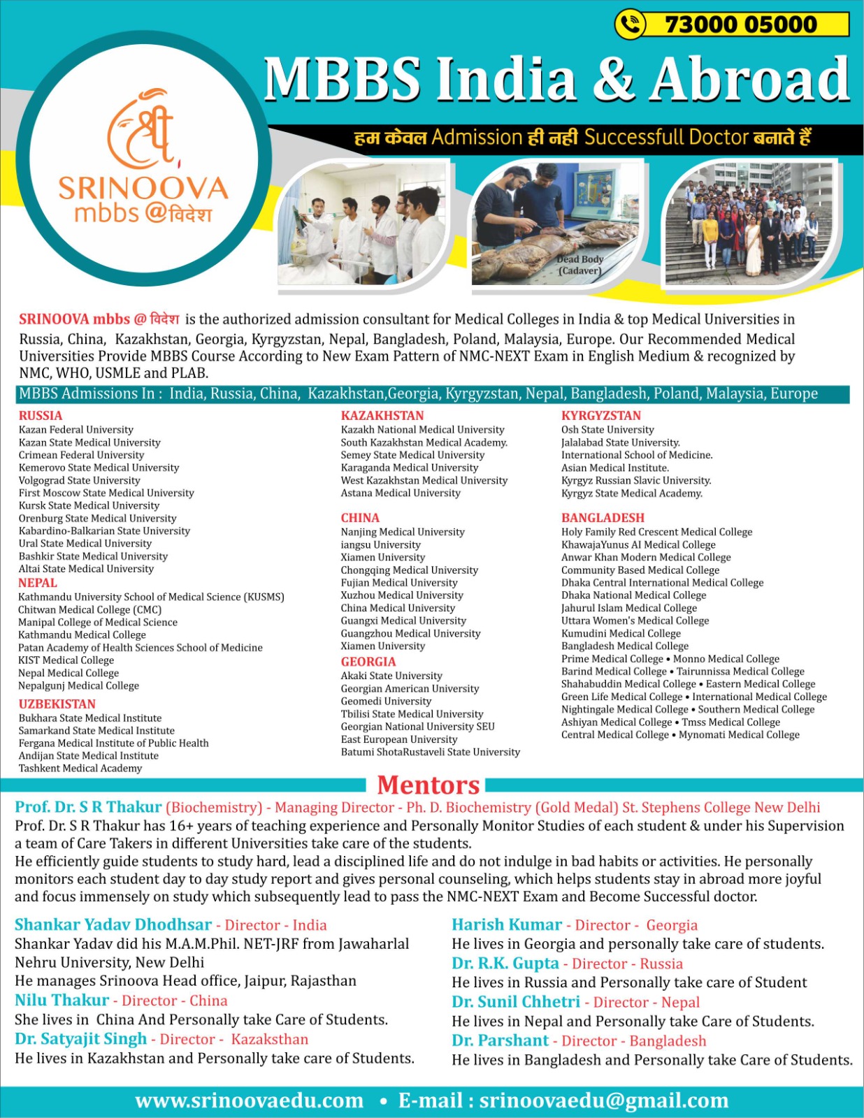 I am very happy with the experience that I had with srinoova educational services and its swift response about the admission and visa formalities, I have to say that the admission process for MBBS in abroad Universities which seemed me very complex was made real easy. Thanks.